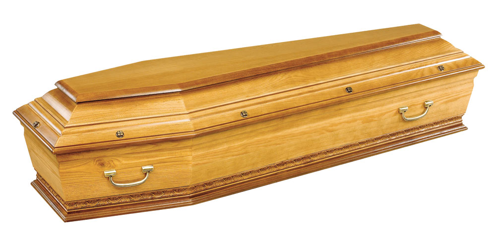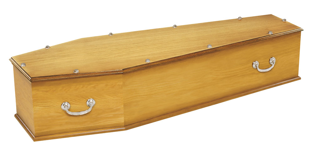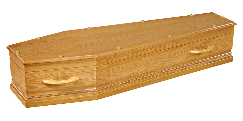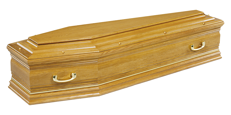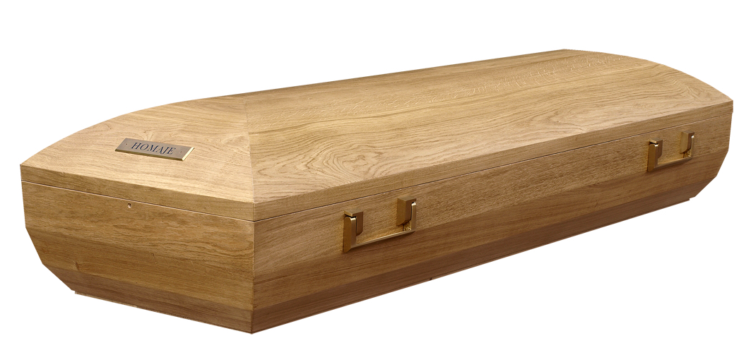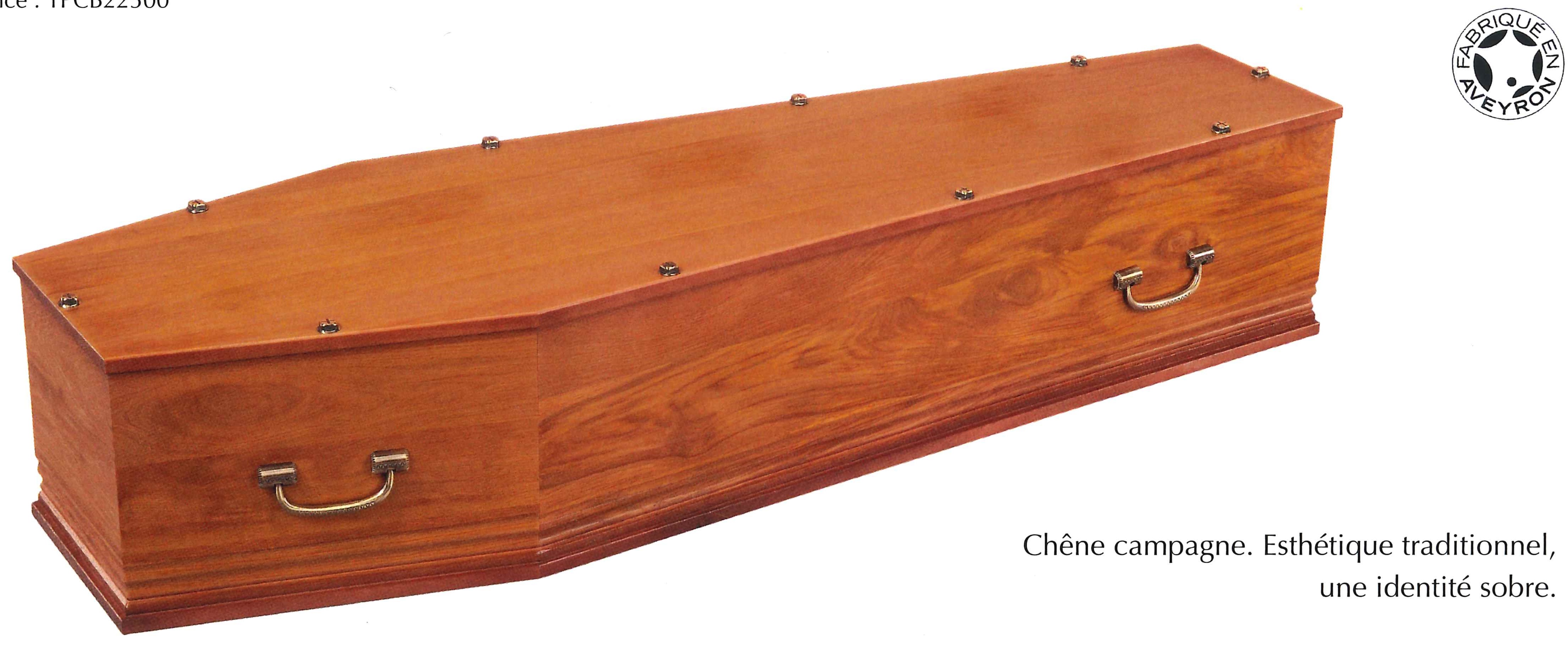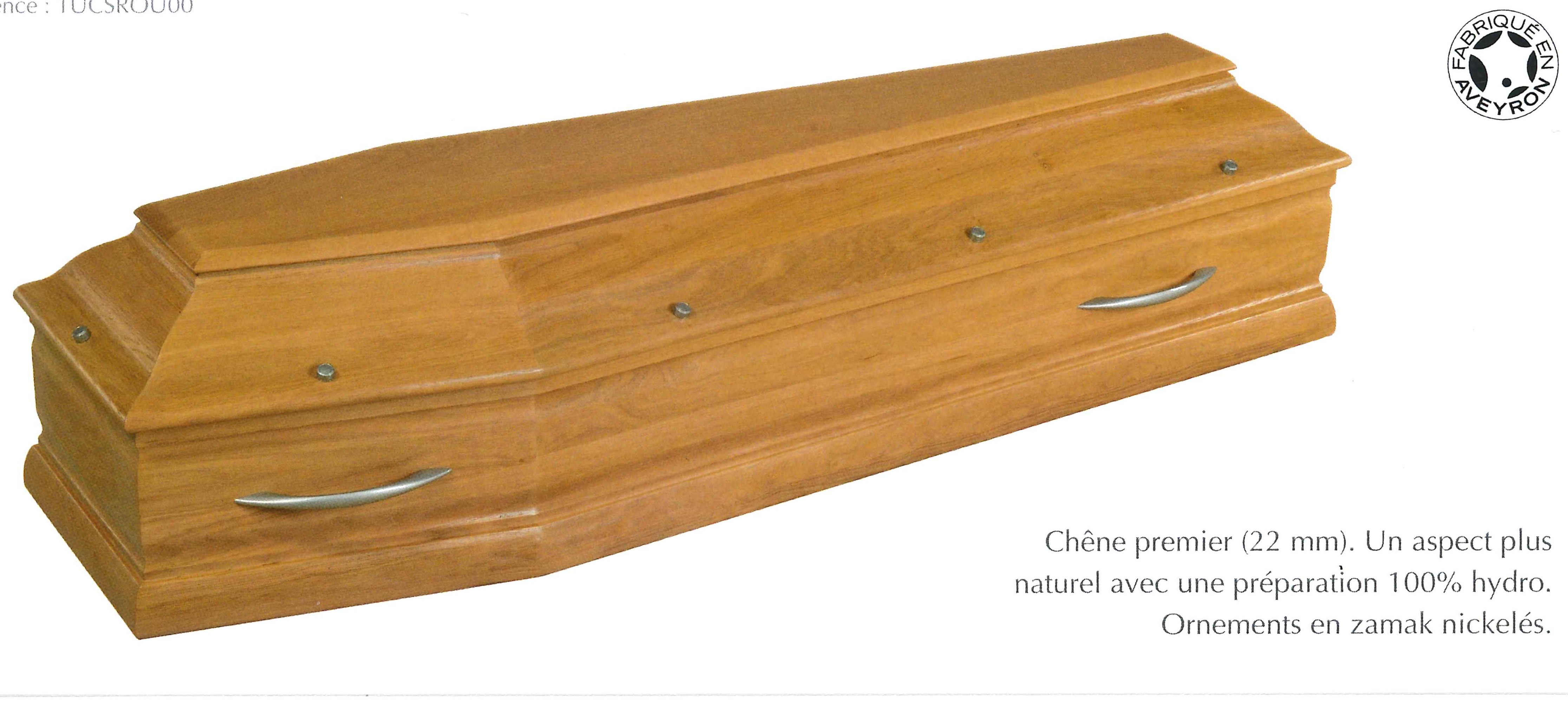 LE ROUSSILLON / cercueil INHUMATION de type TOMBEAU / chêne premier massif 22 mm / teinte chêne clair et vernis satin