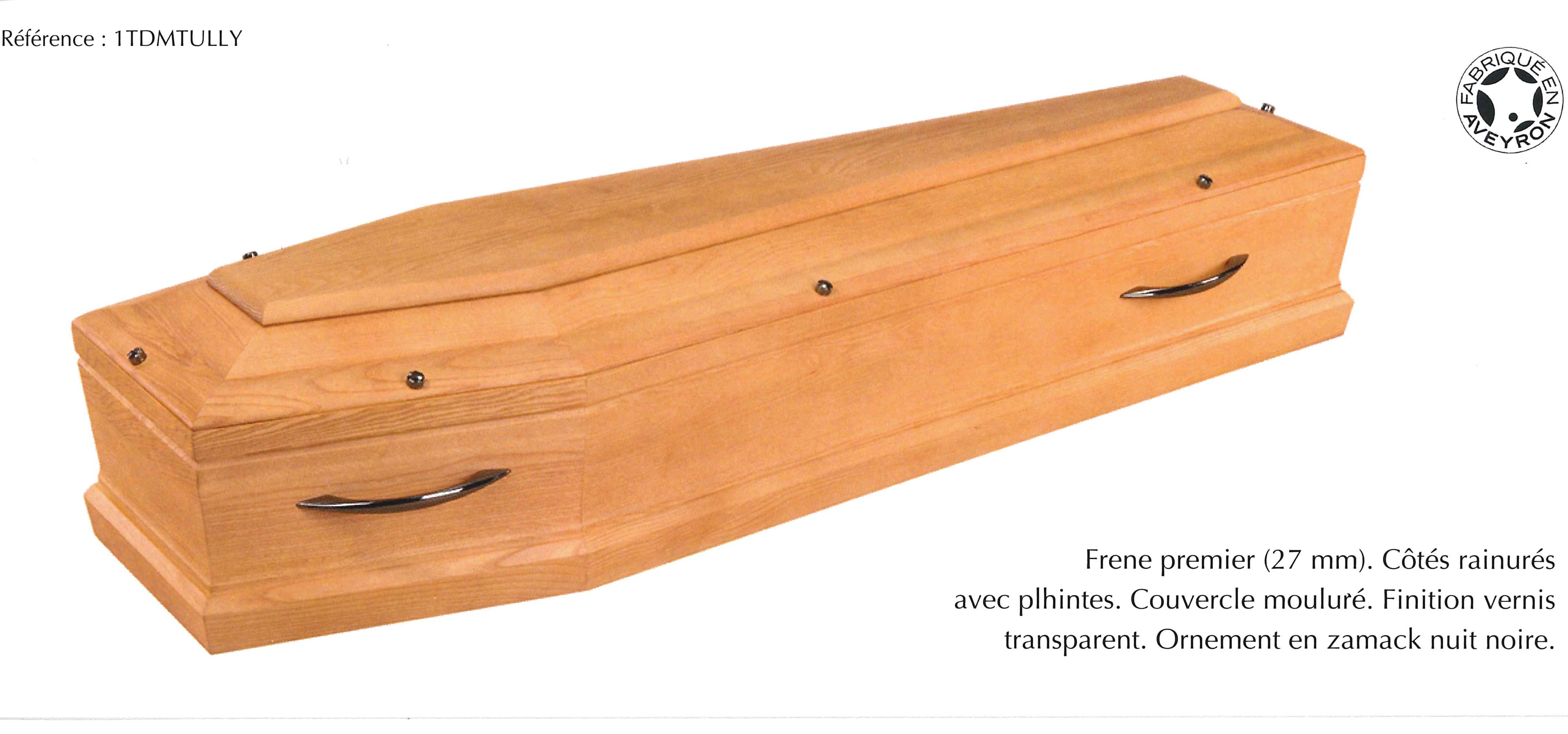 LE TULLY / cercueil INHUMATION de type TOMBEAU / Frêne sélectionné massif 27 mm / vernis transparent