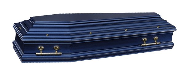 L'AZUR / cercueil INHUMATION de type TOMBEAU / Chêne premier massif 22 mm / laqué bleu / Disponible en noir = L'OPALE