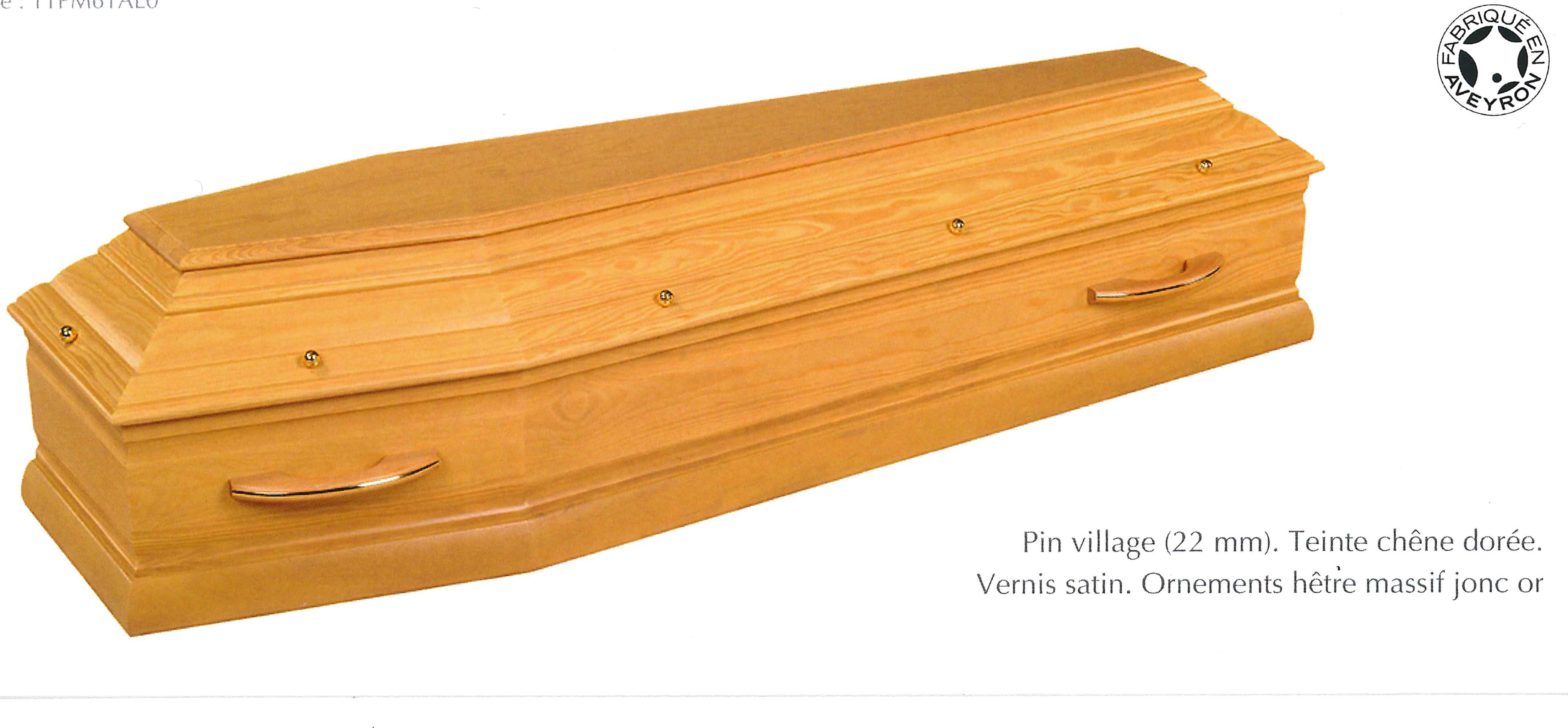 LE TALENSAC / cercueil de CREMATION de type TOMBEAU / pin 22 mm, teinte chêne doré, vernis satin