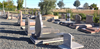 plaques de différentes matière (granit, Altuglas...), vases, jardinières, statues, lanternes et bougies, compositions de