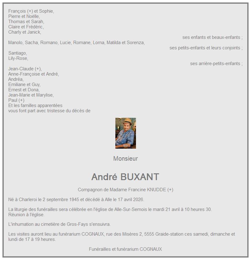 Avis de décès de Monsieur André BUXANT