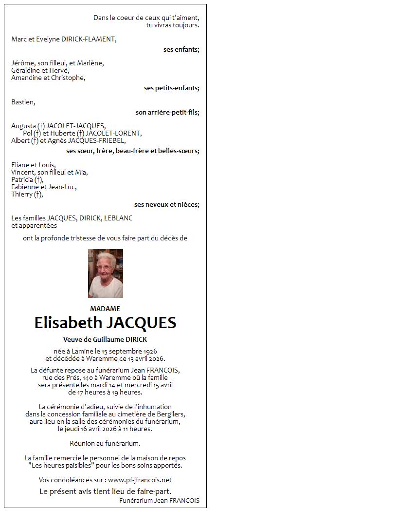 Funérarium Jean FRANCOIS de Waremme le jeudi 16 avril à 11 heures