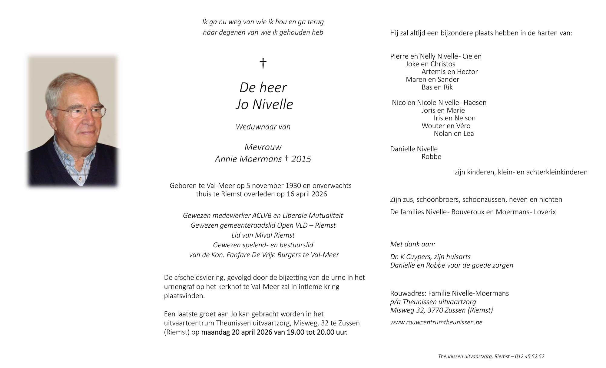 Décédé à Riemst (3770) le jeudi 16 avril 2026 à l'âge de 95 ans