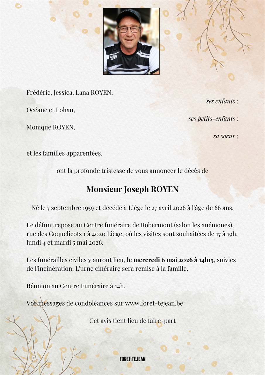 crématorium de Robermont de Robermont le mercredi 6 mai à 14 heures 15
