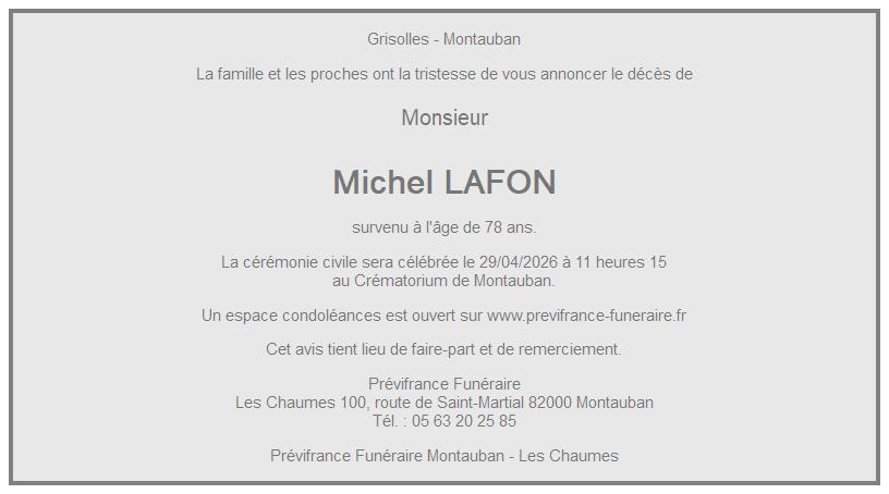 Weduwnaar van Madame Danielle LAFON née LAFFORGUE
