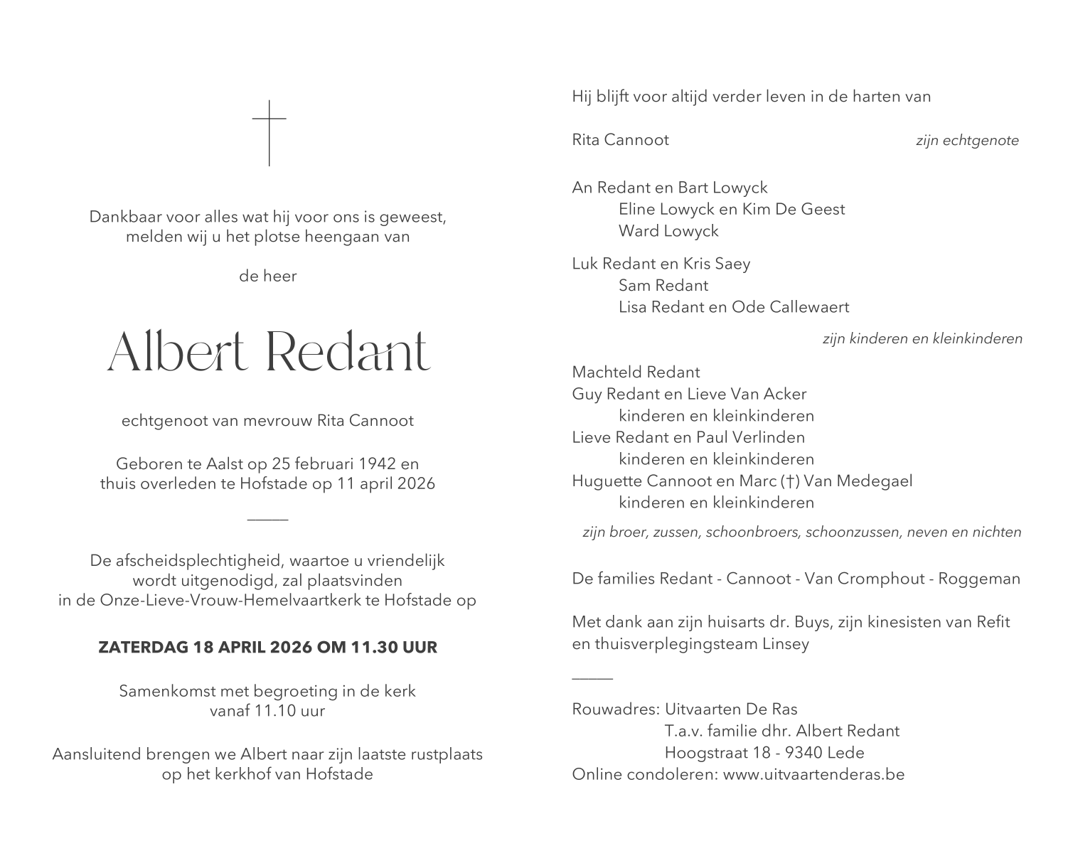 Décédé à Hofstade (O.-Vl.) (9308) le mardi 14 avril 2026
