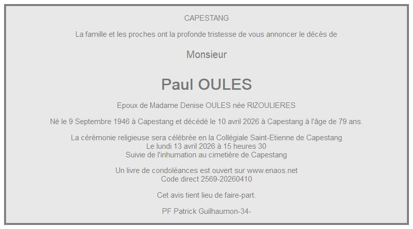 Décédé à Capestang (34310, France) le vendredi 10 avril 2026 à l'âge de 79 ans