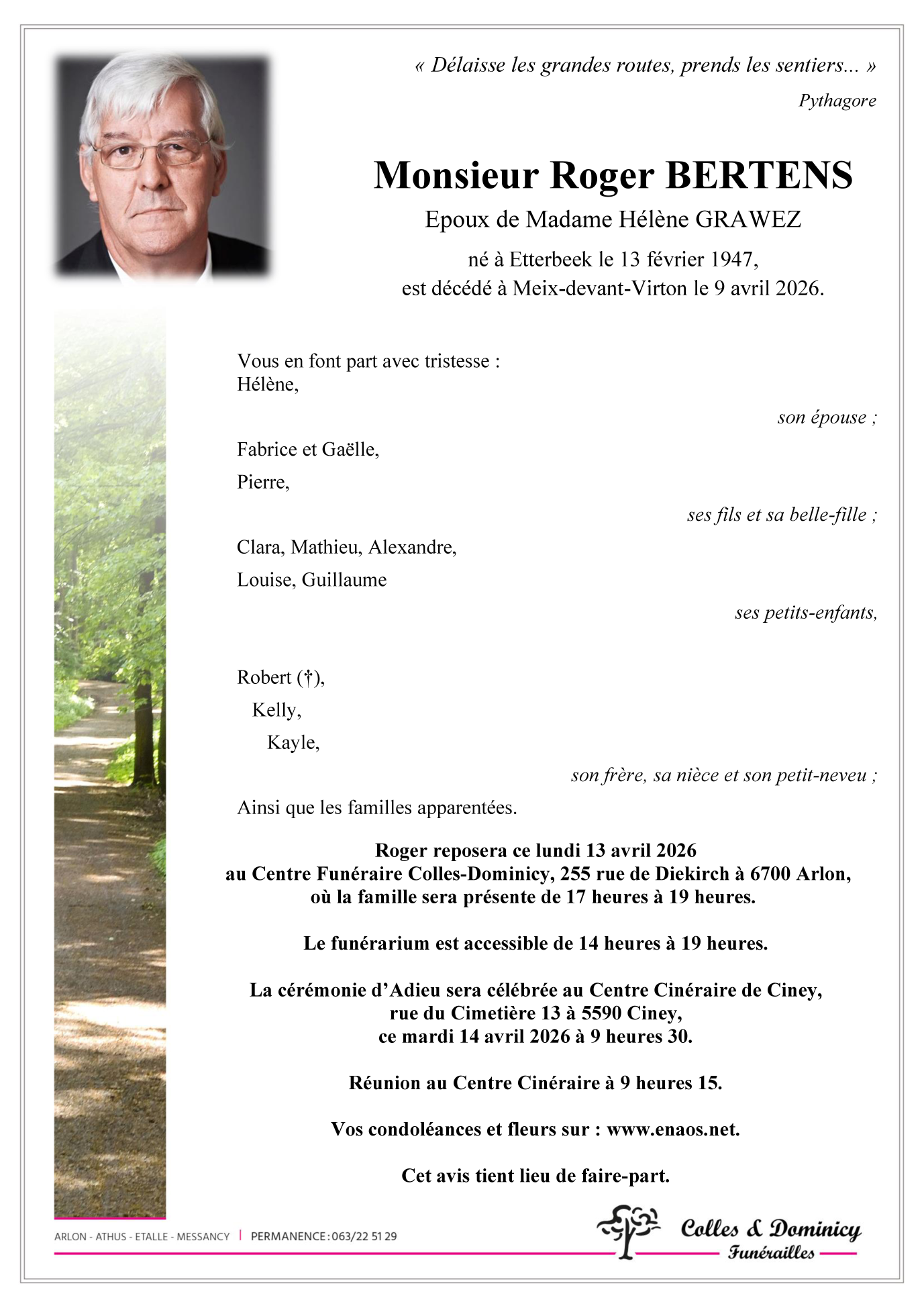 crématorium du Coeur de Wallonie le mardi 14 avril à 10 heures
