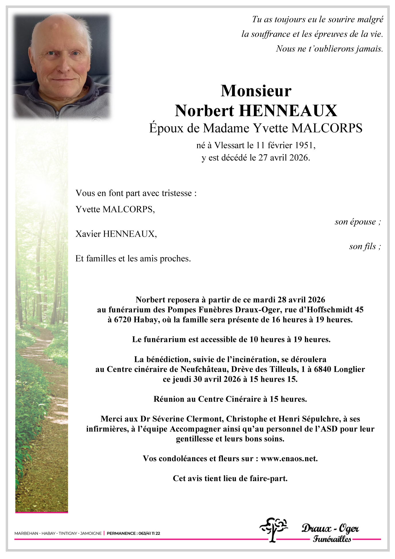 Centre cinéraire de Longlier de Longlier le jeudi 30 avril à 15 heures 15