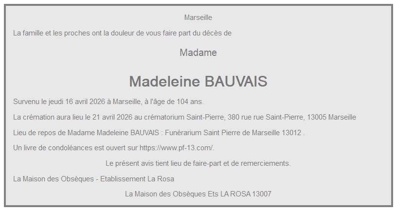 Crématorium Saint Pierre le mardi 21 avril à 11 heures 15