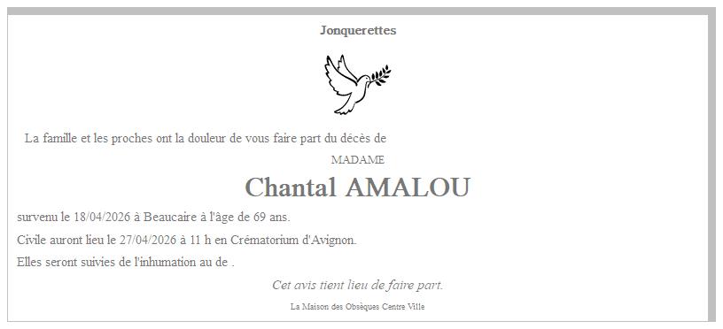 Décédée à Beaucaire (30300, France) le samedi 18 avril 2026 à l'âge de 69 ans
