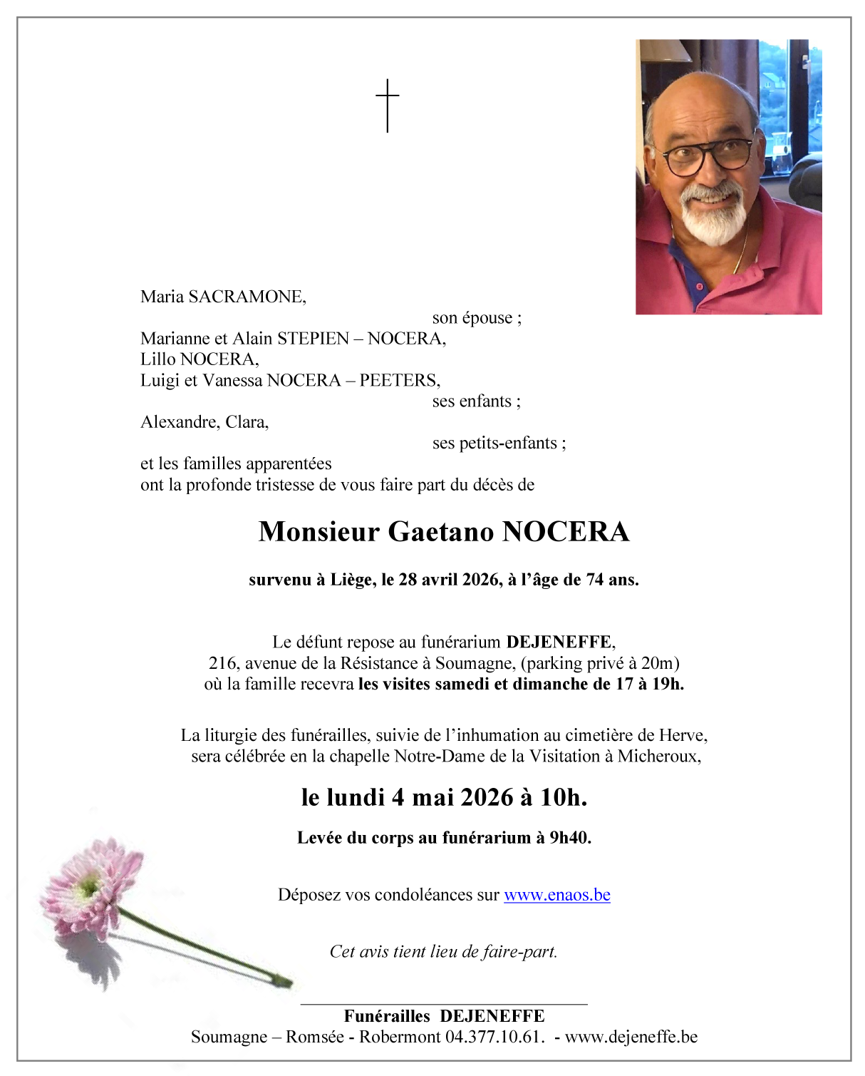Overlijdensbericht van Meneer Gaetano NOCERA