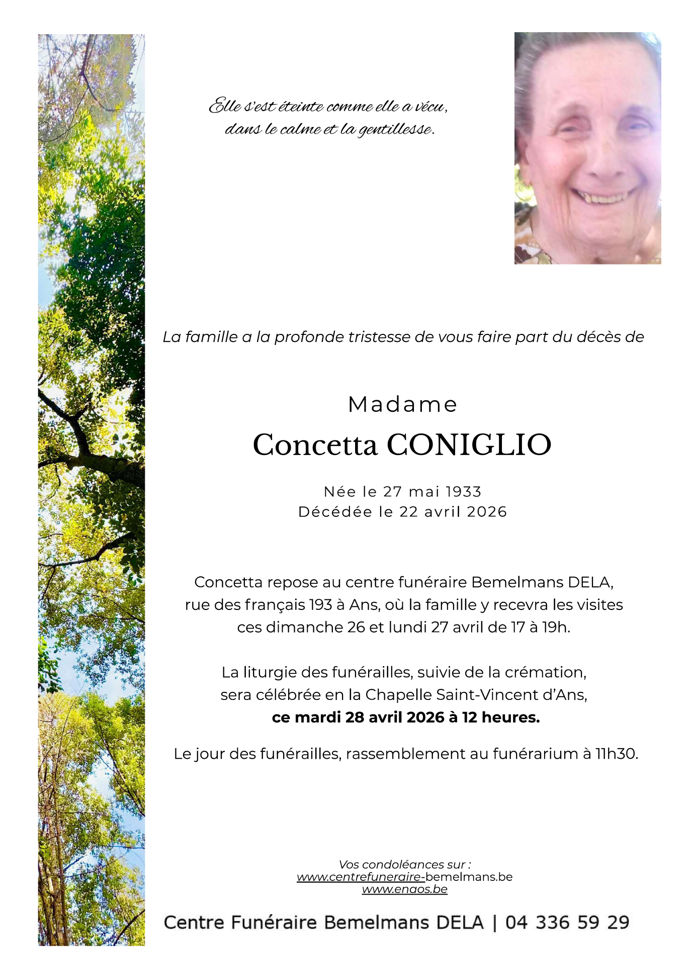 Avis de décès de Madame Concetta CONIGLIO