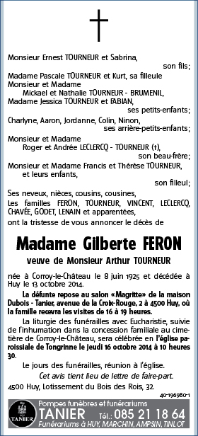 Died in Huy (4500) on 13 October 2014 at the age of 89 years
