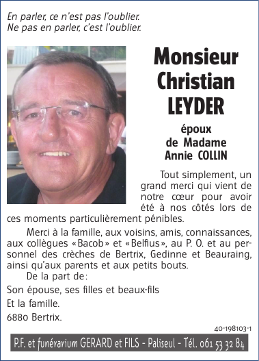 Décédé à Libramont (6800) le samedi 18 octobre 2014 à l'âge de 56 ans
