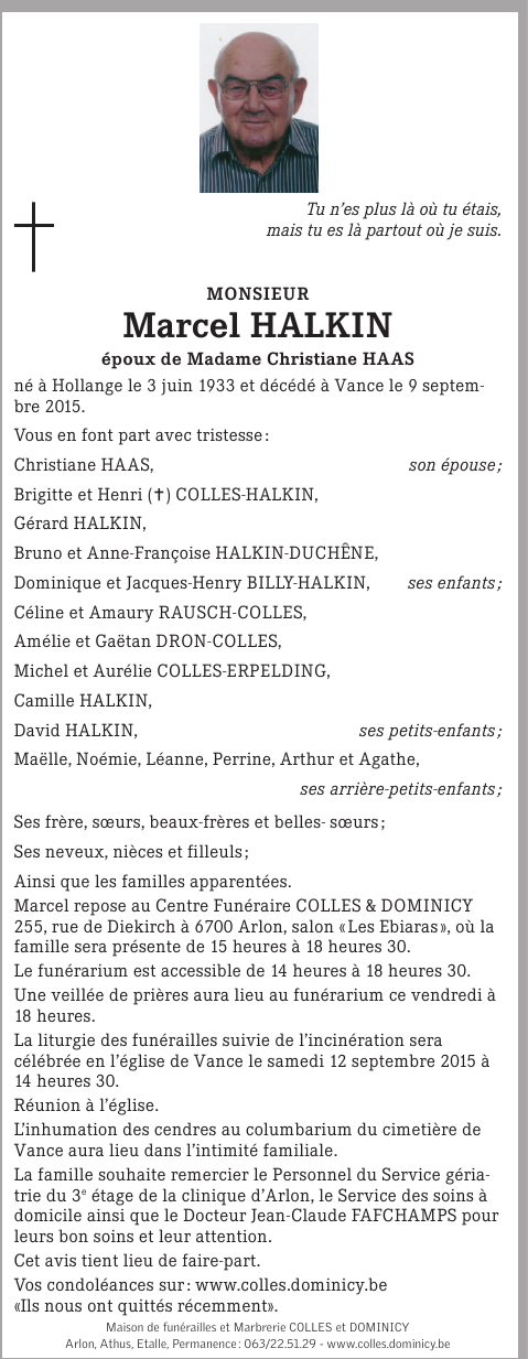 Décédé à Vance (6741) le mercredi 9 septembre 2015 à l'âge de 82 ans