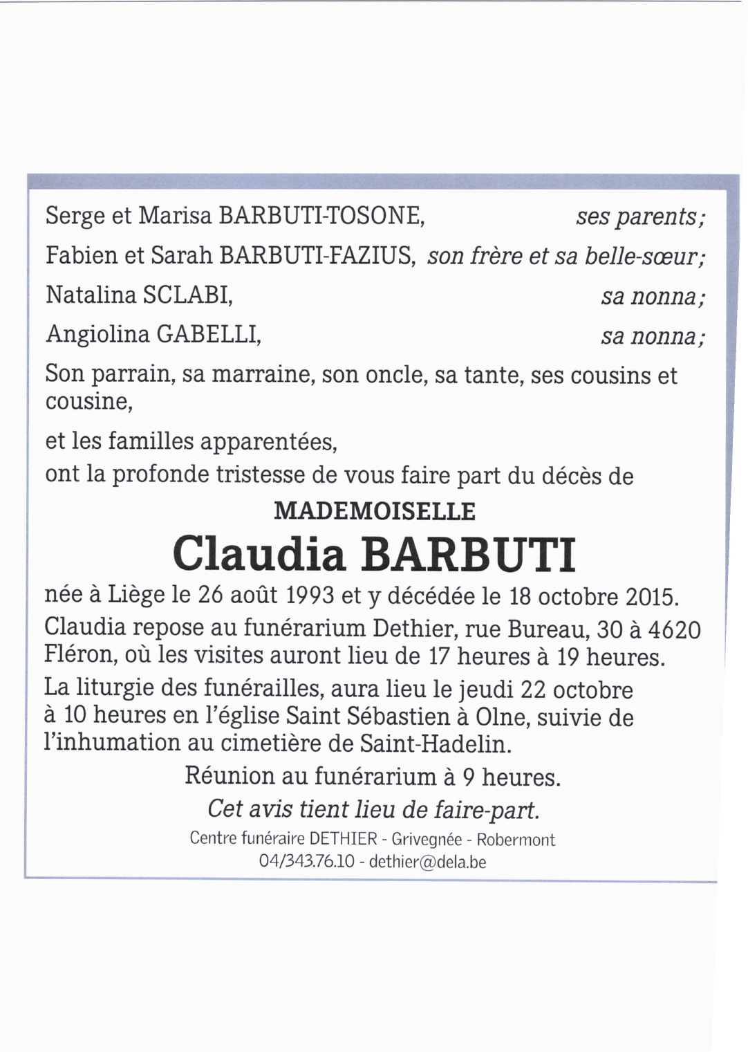 Overleden te Liège (4020) op zondag 18 oktober 2015 op 22-jarige leeftijd
