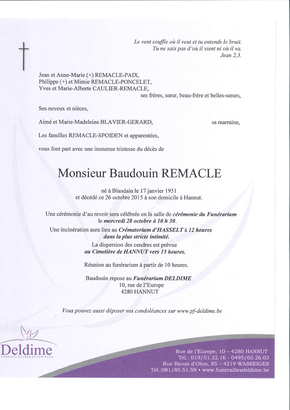 Décédé à Hannut (4280) le lundi 26 octobre 2015 à l'âge de 64 ans