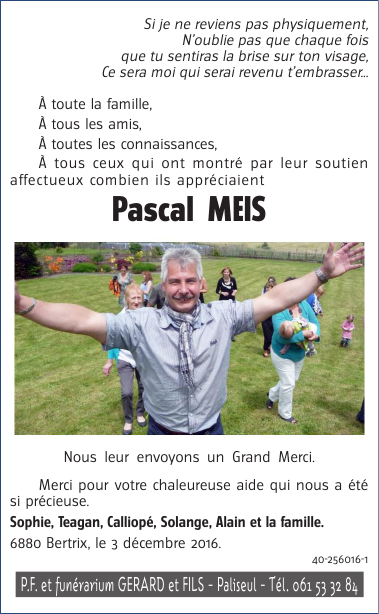 Décédé à Mont-Godinne (5530) le jeudi 10 novembre 2016 à l'âge de 51 ans