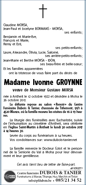 Died in Moha (4520) on 26 October 2017 at the age of 95 years