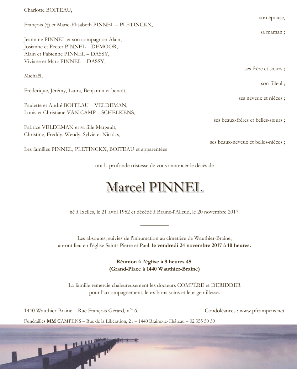 Décédé à Braine-l'Alleud (1420) le lundi 20 novembre 2017 à l'âge de 65 ans