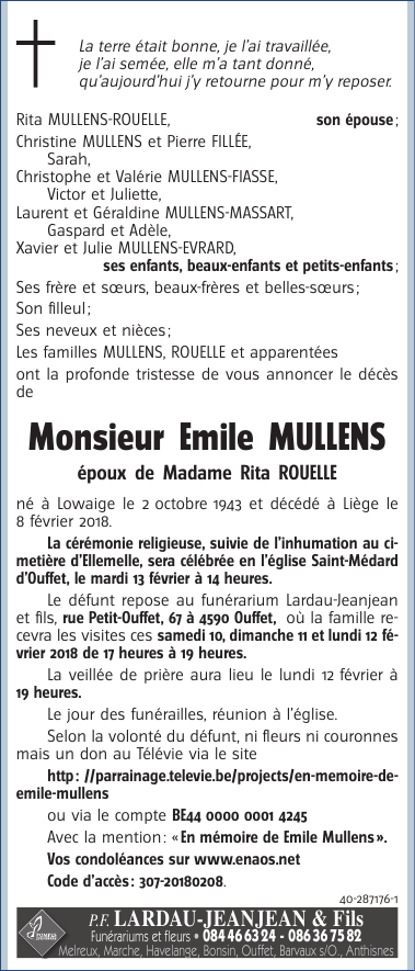 Décédé à Liège (4000) le vendredi 9 février 2018 à l'âge de 74 ans
