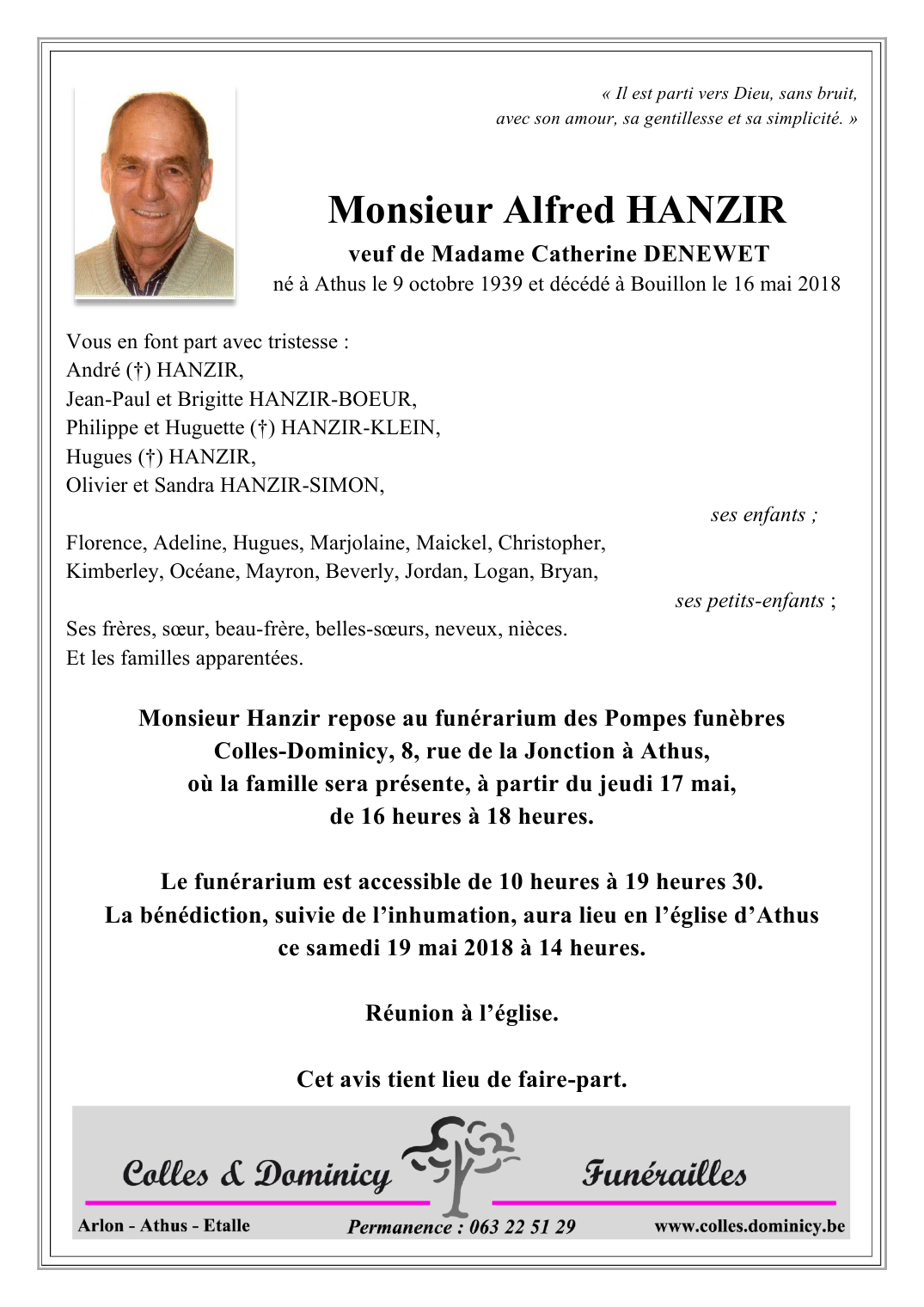 Died in Bouillon (6830) on 16 May 2018 at the age of 78 years