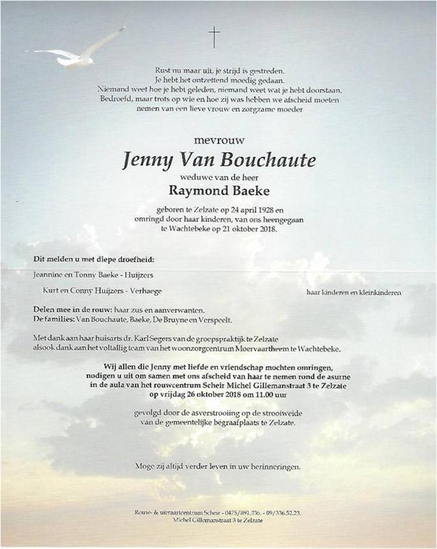Décédée à Wachtebeke (9185) le dimanche 21 octobre 2018 à l'âge de 90 ans