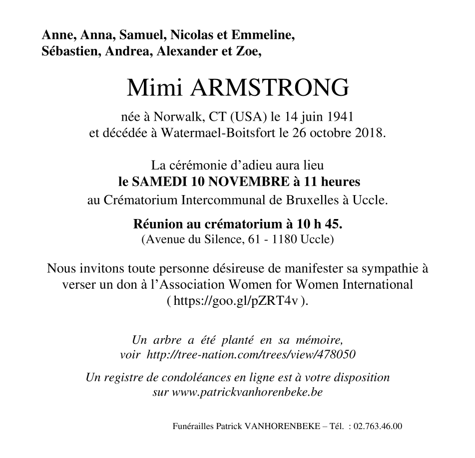 Died in Bruxelles (Watermael-Boitsfort) (1170) on 26 October 2018 at the age of 77 years