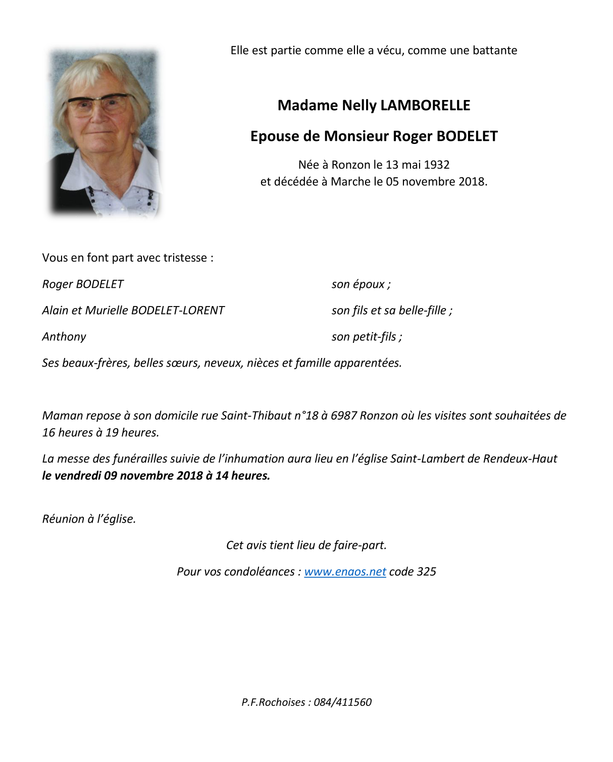 Died in Marche-en-Famenne (6900) on 05 November 2018 at the age of 86 years