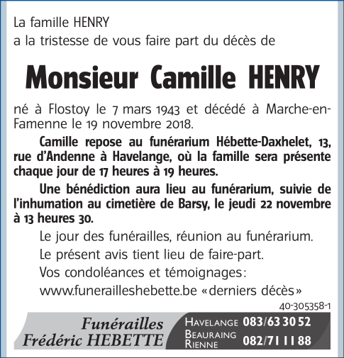 Décédé à Marche-en-Famenne (6900) le lundi 19 novembre 2018 à l'âge de 75 ans