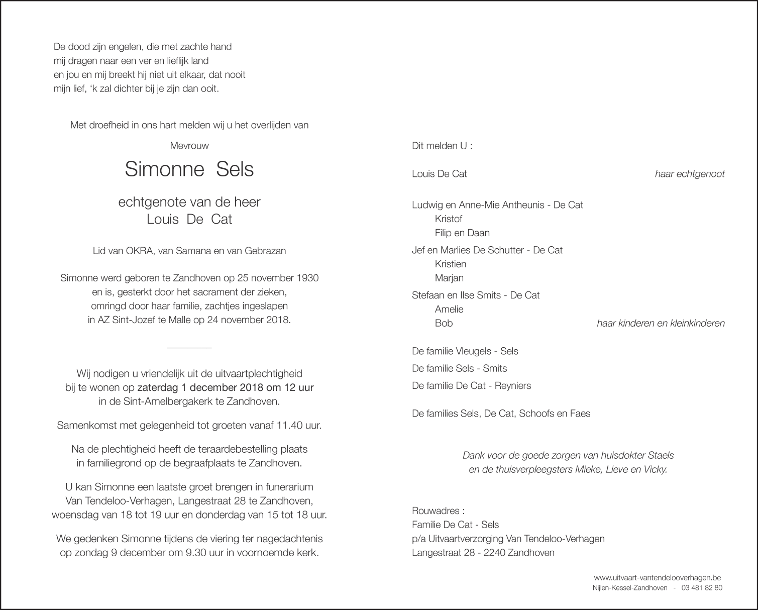 Décédée à Malle (2390) le samedi 24 novembre 2018 à l'âge de 87 ans