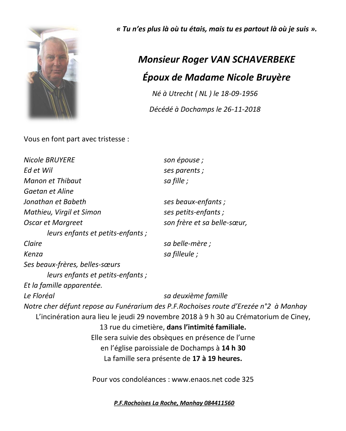 Died in Dochamps (6960) on 26 November 2018 at the age of 62 years