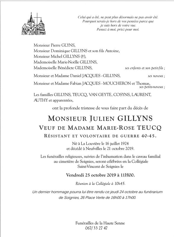 Décédé à Neufvilles (7063) le lundi 21 octobre 2019 à l'âge de 95 ans