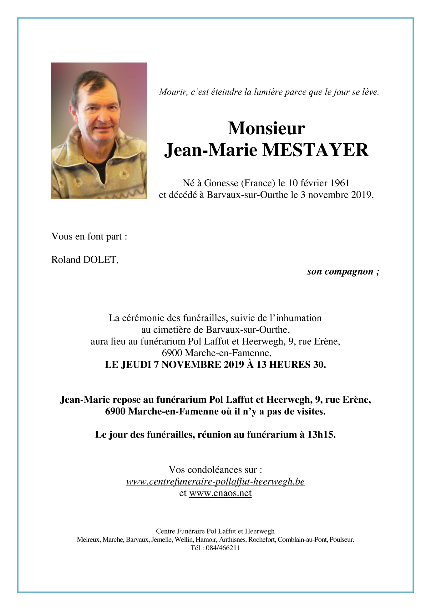 Décédé à Barvaux-sur-Ourthe (6940) le dimanche 3 novembre 2019 à l'âge de 58 ans