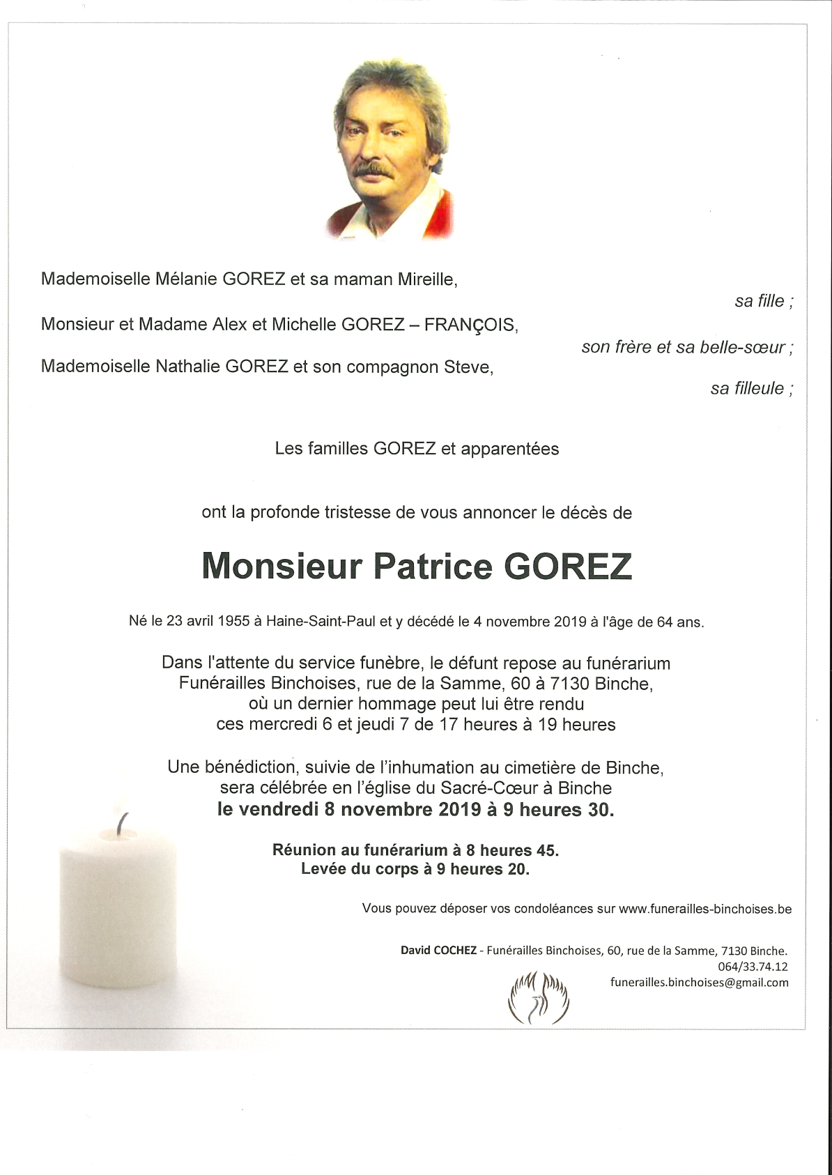Décédé à La Louvière (7100) le lundi 4 novembre 2019 à l'âge de 64 ans