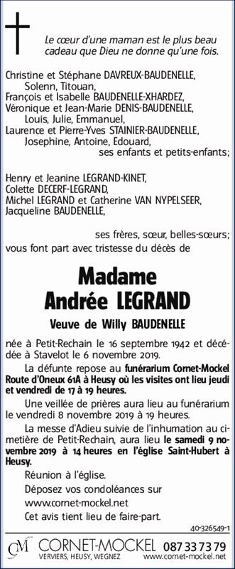Died in Stavelot (4970) on 06 November 2019 at the age of 77 years
