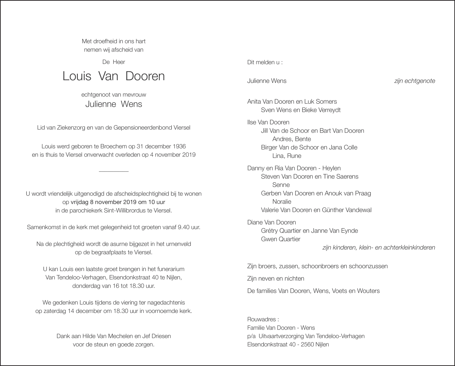 Fallecido en Viersel (2240) el lunes, 4 de noviembre de 2019 a la edad de 82 años