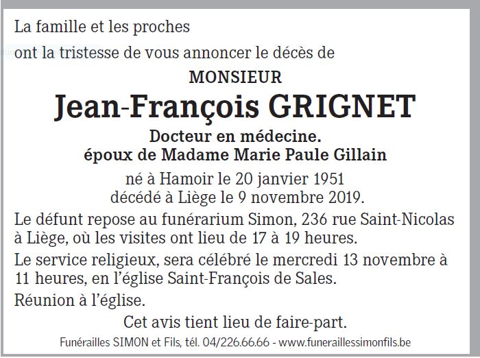 Décédé à Liège (4000) le samedi 9 novembre 2019 à l'âge de 68 ans