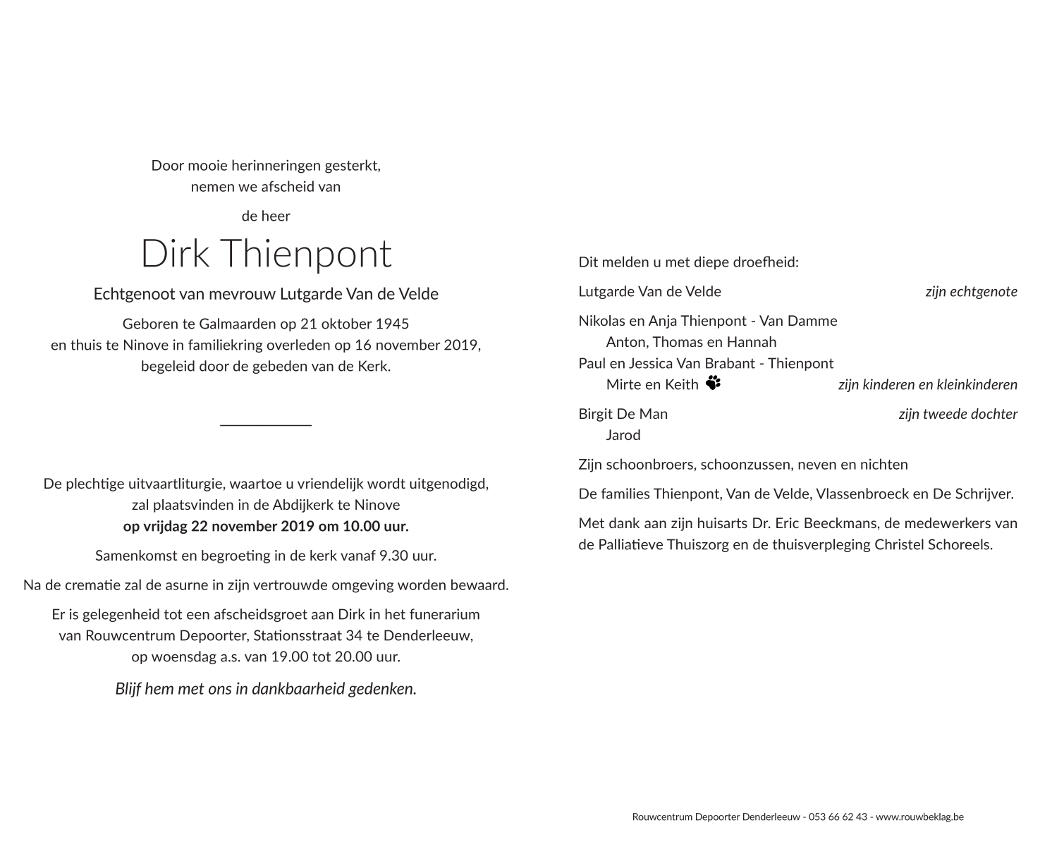 Décédé à Ninove (9400) le samedi 16 novembre 2019 à l'âge de 74 ans