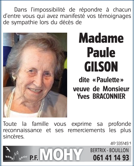 Fallecida en Libramont (6800) el sábado, 14 de marzo de 2020 a la edad de 88 años