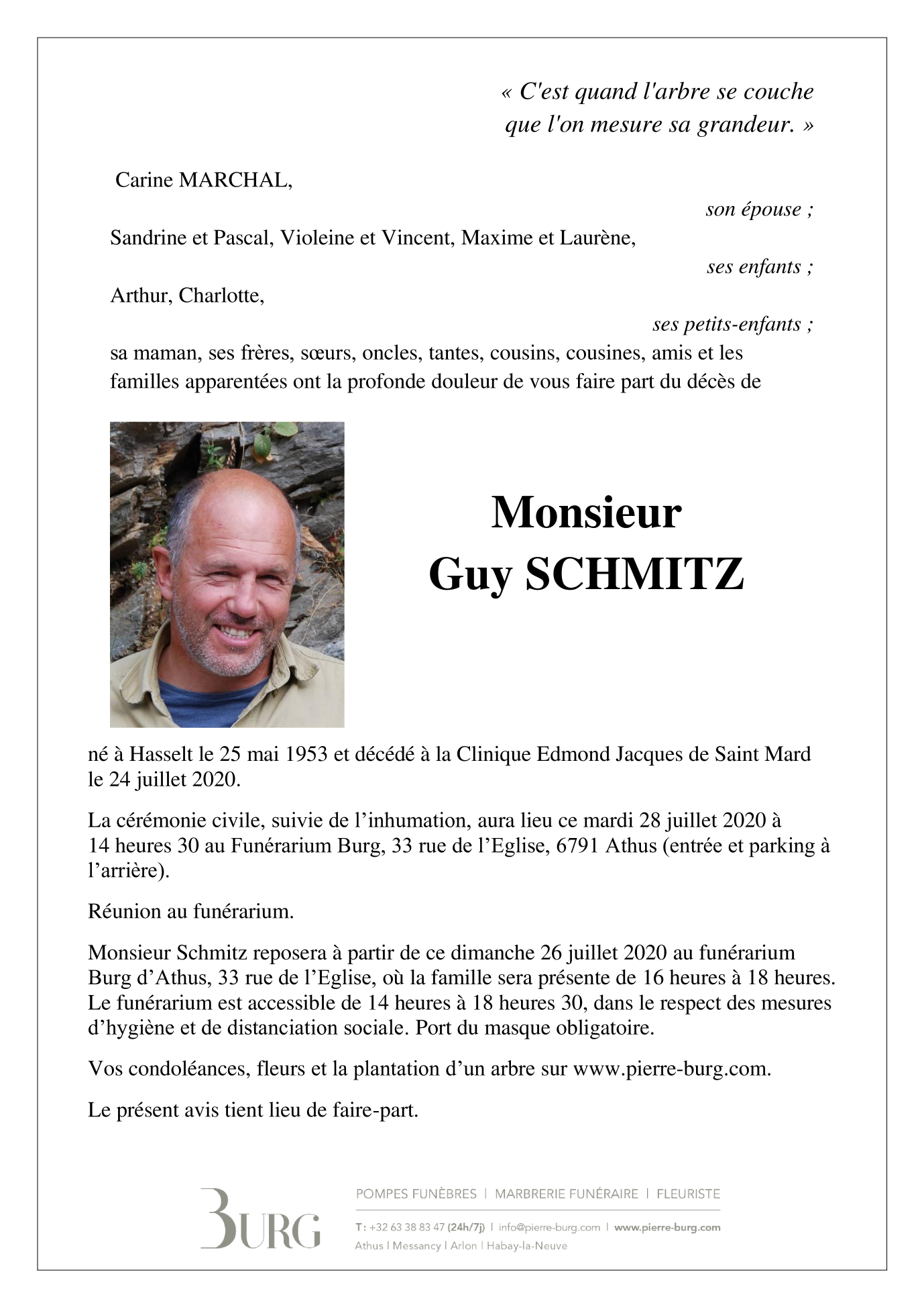 Décédé à Saint-Mard (6762) le vendredi 24 juillet 2020 à l'âge de 67 ans