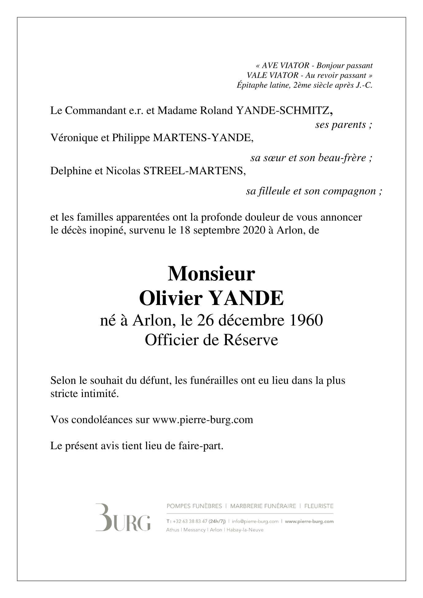 Fallecido en Arlon (6700) el viernes, 18 de septiembre de 2020 a la edad de 59 años