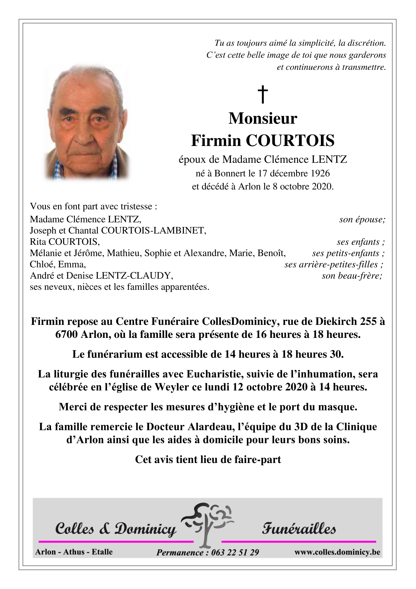 Fallecido en Arlon (6700) el jueves, 8 de octubre de 2020 a la edad de 93 años