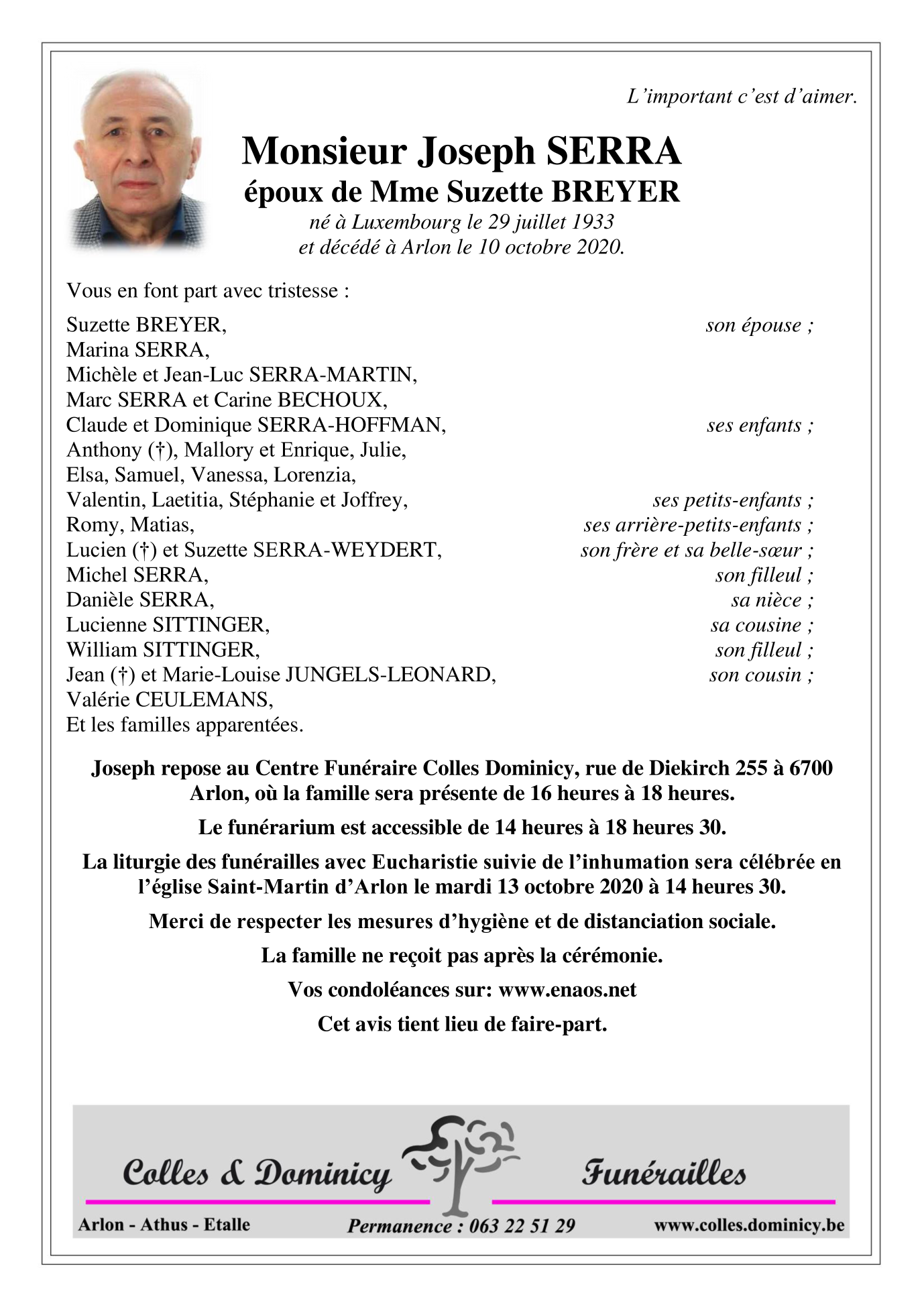 Fallecido en Arlon (6700) el sábado, 10 de octubre de 2020 a la edad de 87 años