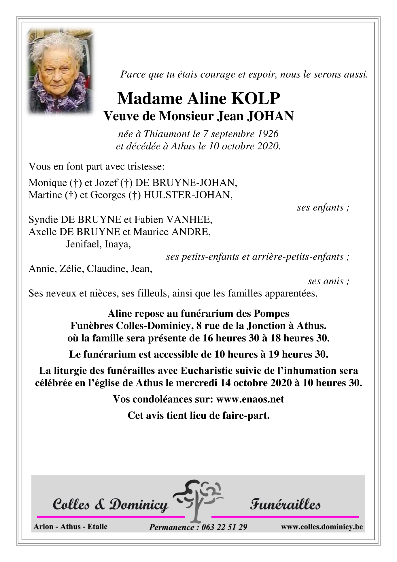 Died in Athus (6791) on 10 October 2020 at the age of 94 years