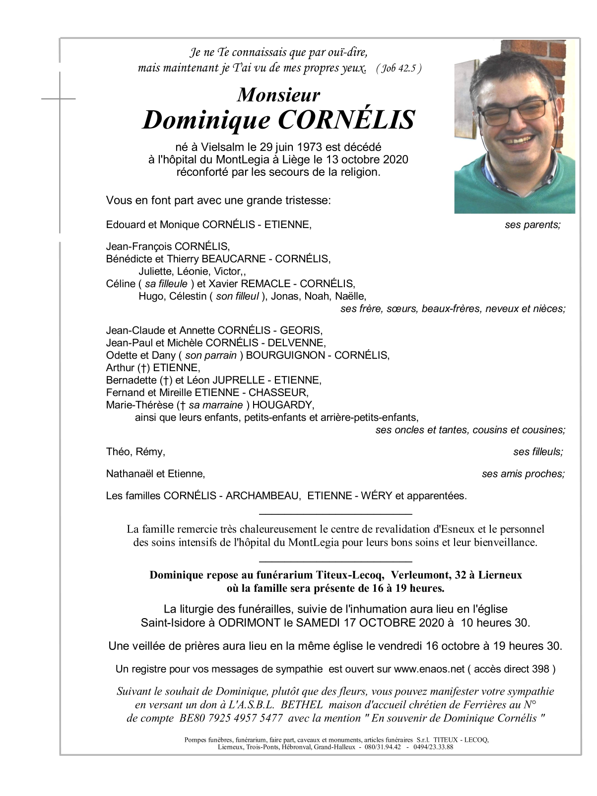 Décédé à Liège (4000) le mardi 13 octobre 2020 à l'âge de 47 ans