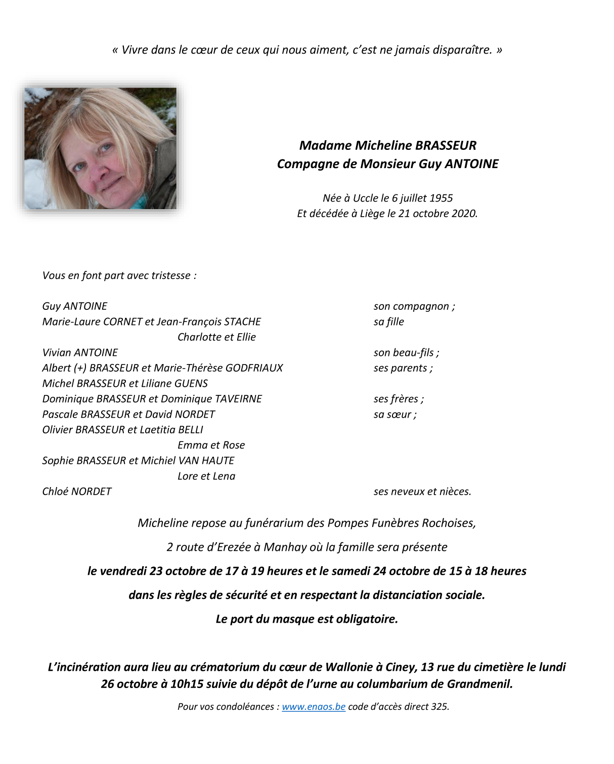 Died in Liège (4000) on 21 October 2020 at the age of 65 years