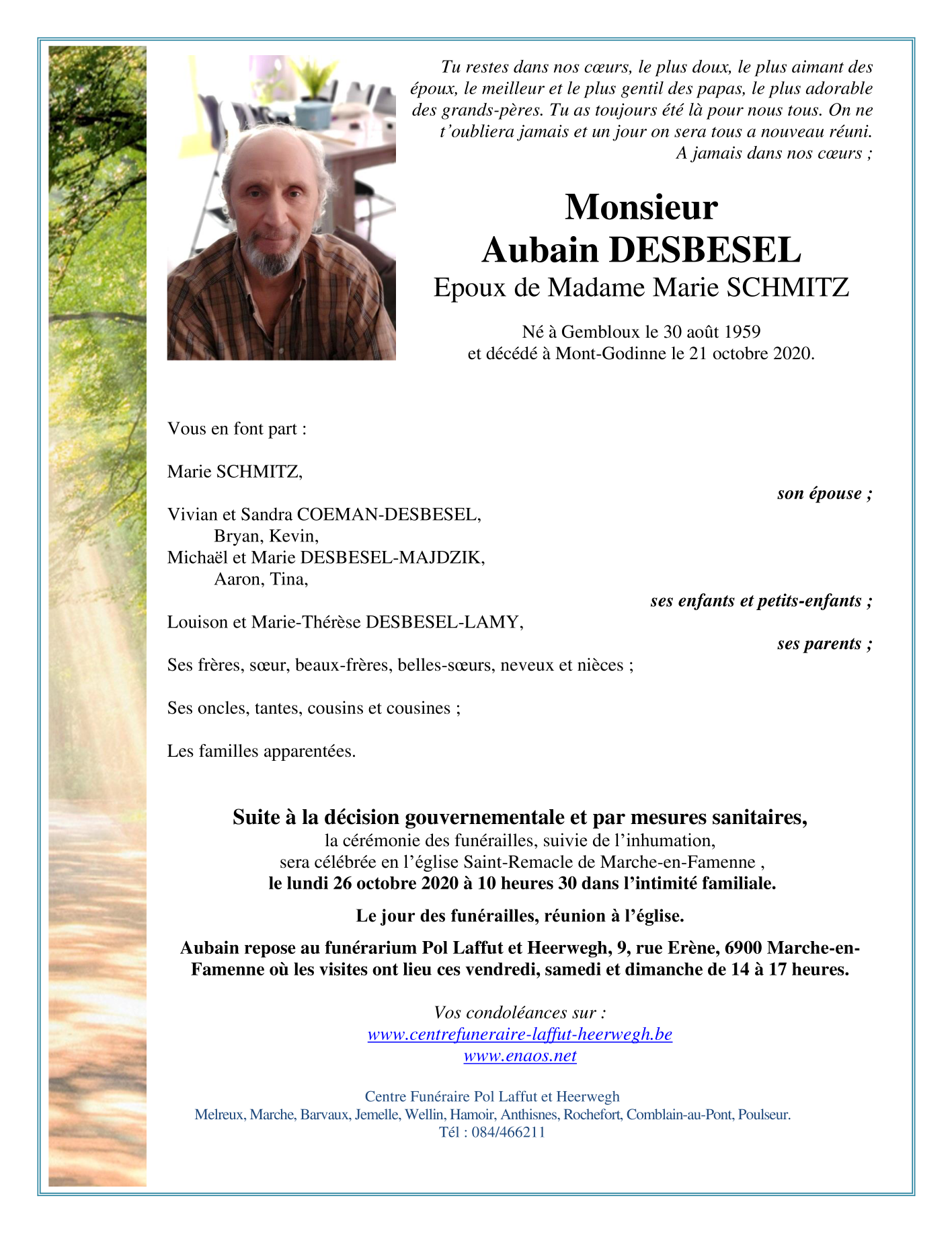 Overleden te Mont-Godinne (5530) op woensdag 21 oktober 2020 op 61-jarige leeftijd
